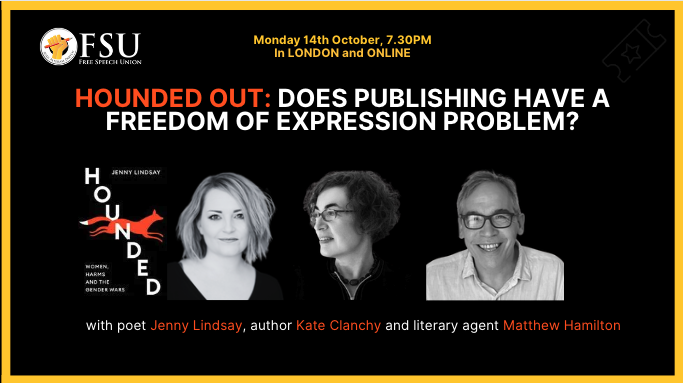 FSU BOOK LAUNCH Hounded Out: Does Publishing Have a Freedom of Expression Problem? Monday 14th October, 7.30pm Lola's Bar, Lower Ground Floor, The Hippodrome Casino, Main Entrance, London WC2H 7JH SPEAKERS: Jenny Lindsay, poet and essayist Kate Clanchy, author Matthew Hamilton, literary agent   “There is more than one way to burn a book. And the […]