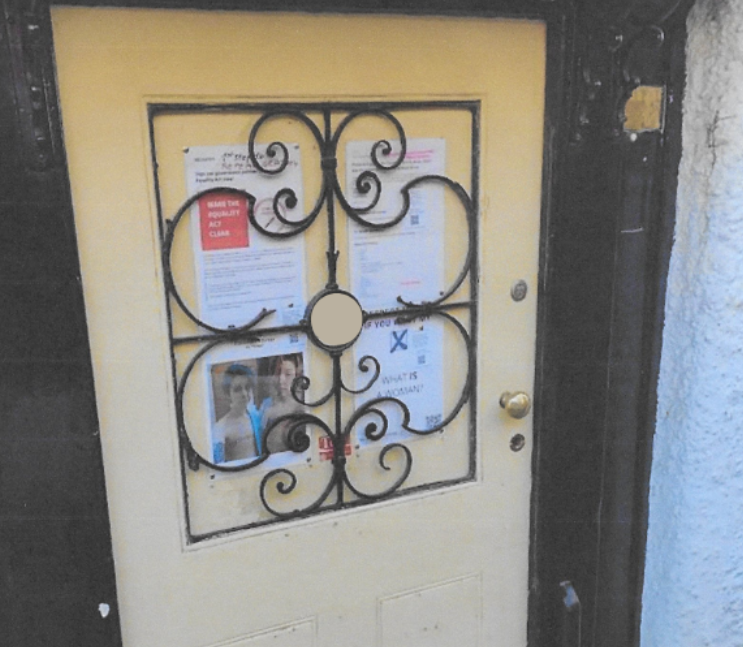 The front door display, which the Council labelled “hate speech”, includes materials from campaign groups Transgender Trend, Sex Matters, and Women’s Rights Network.