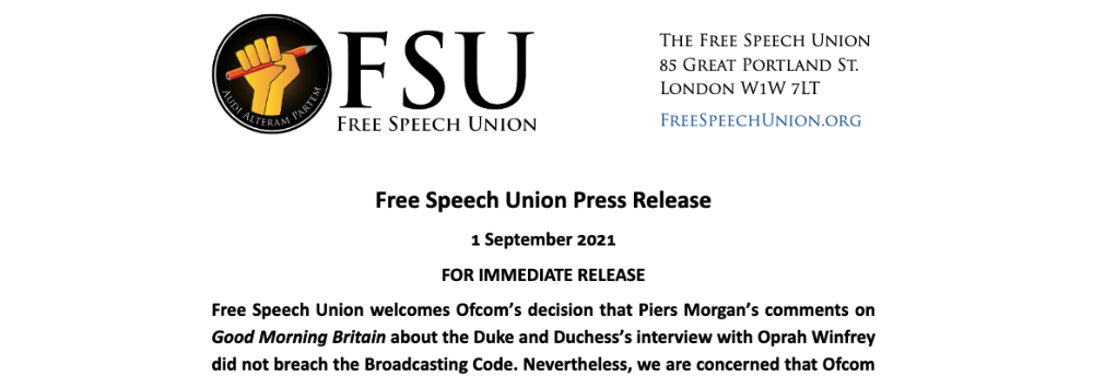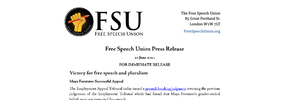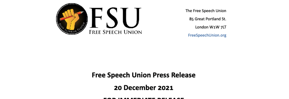 Free Speech Union Welcomes Court of Appeal Judgment in Landmark Free Speech Case Read More » December 20, 2021